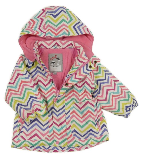 Bílo-barevná vzorovaná šusťáková zateplená bunda s kapucí