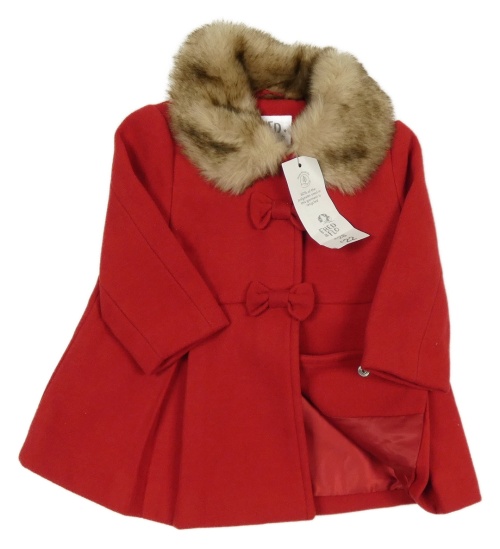 Nové - Červený flaušový podšitý kabátek s kožešinovým límcem F&F