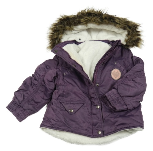 Lilková šusťáková zimní parka s nášivkou a odepínací kapucí s kožešinou campus