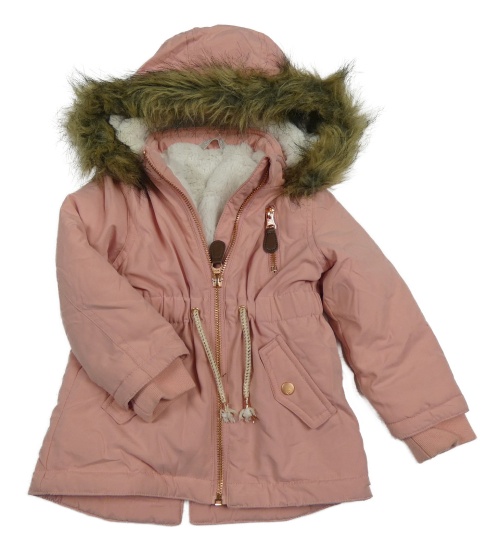 Růžová šusťáková zimní parka s kapucí s kožešinou Smile