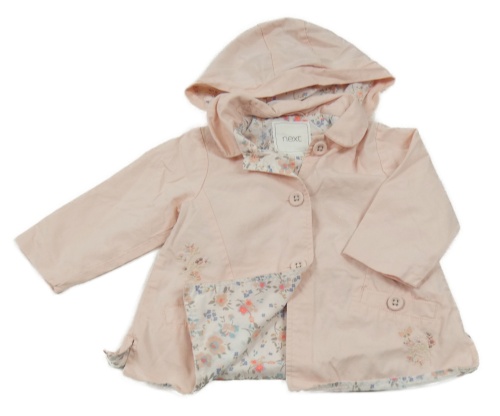Světlerůžový plátěný jarní kabát s výšivkami květin a kapucí Next