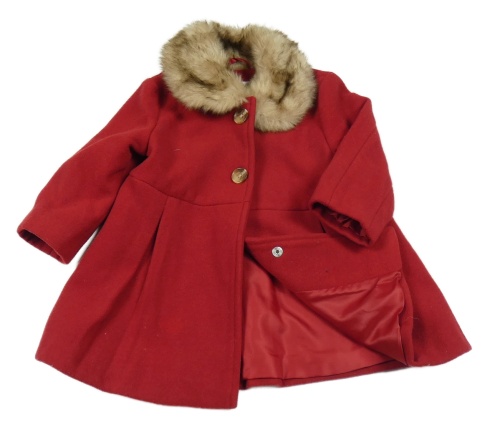 Červený flaušový podšitý kabát s kožešinou F&F