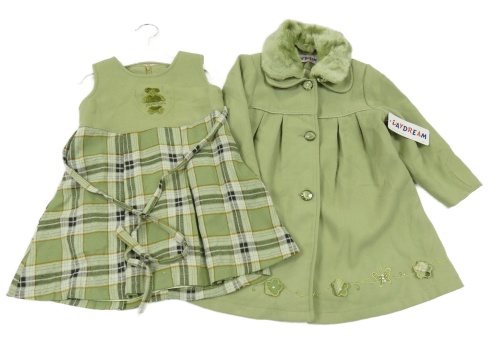 Nové- 2set- zelený flaušový kabát+ zeleno-kostkované šaty s výšivkou