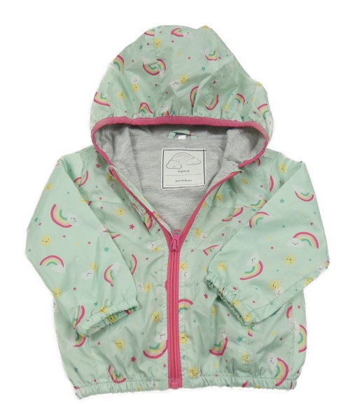 Mintová šusťáková jarní bunda s duhami a kapucí