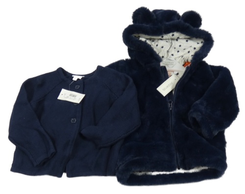 Nové - 2set- tmavomodrá kožešinová podšitá bunda s kapucí+ propínací svetr Bluezoo