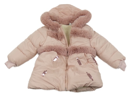 Světlerůžová šusťáková zimní bunda s kožíškem a kapucí