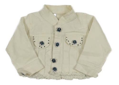 Smetanová riflová crop bunda s kamínky a gombíky