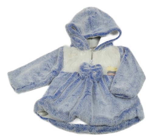 Modro-bílá kožešinová parka s mašlí a kapucí