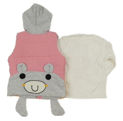 • 2Set - Růžovo-oranžovo-šedá prošívaná propínací zateplená tepláková vesta se žirafou a kapucí + bílé triko se žirafami