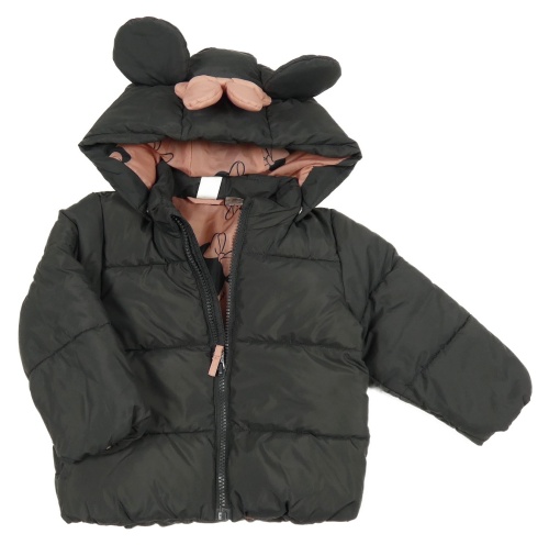 Šedá šusťáková zimní bunda s kapucí s mašlí H&M
