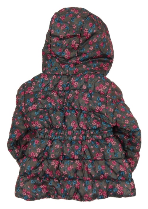 Hnědá květinová šusťáková zimní bunda s nášivkou a kapucí