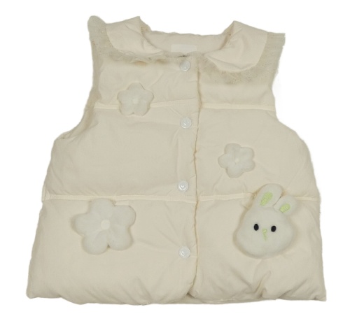 Smetanová šusťáková zateplená vesta s králíky
