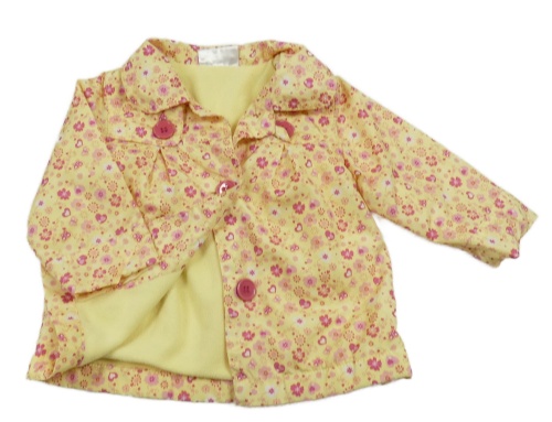 Žlutá květovaná šusťáková jarní bunda se srdíčky