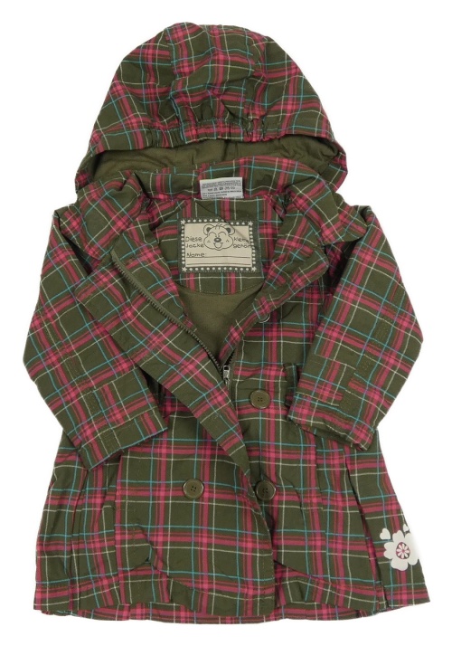 Khaki-růžovo-modrý kostkovaný šusťákový jarní kabát s odepínací kapucí Topolino