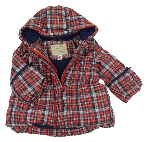 Tmavomodro-červeno-bílá kostkovaná šusťáková zimní bunda s kapucí TucTuc
