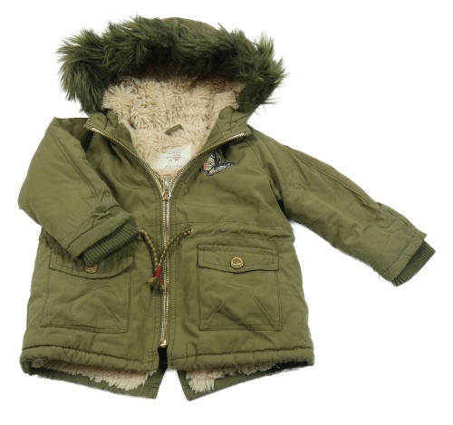 Khaki šusťáková zimní parka s motýlem a kapucí Zara