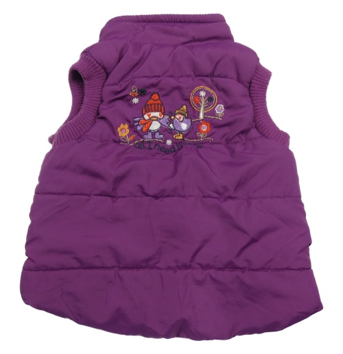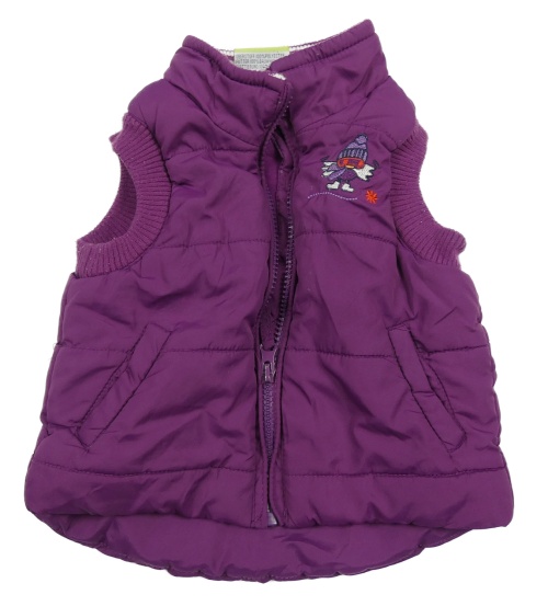 Purpurová prošívaná šusťáková zateplená vesta s ptáčkem Topolino