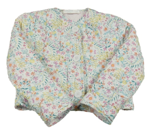Bílá prošívaná plátěná zateplená bunda s kytičkami LEIGH TUCKER