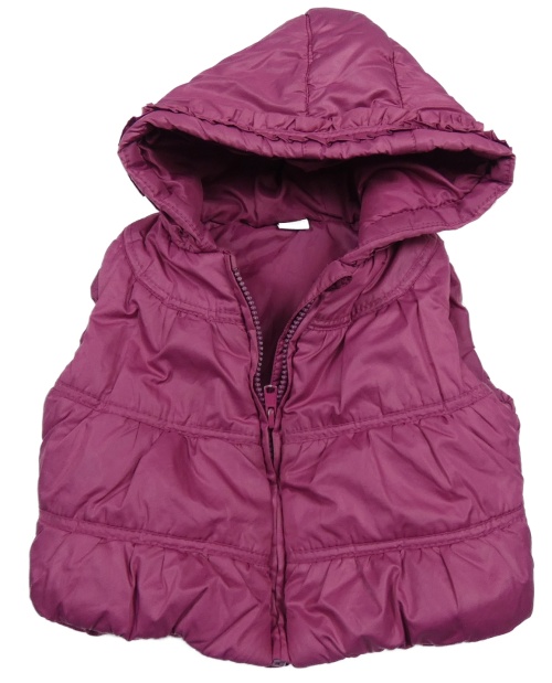 Fuchsiová šusťáková zateplená vesta s kapucí