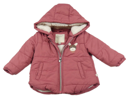 Růžová šusťáková zimní bunda s oslem a kapucí