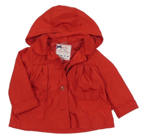 Červený šusťákový jarní kabát s kapucí