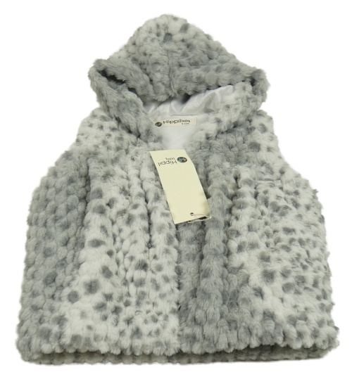 Nové - Šedá vzorovaná kožešinová podšitá vesta s kapucí