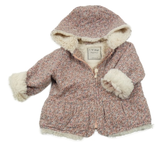 Růžový květovaný zateplený kabátek s kapucí Next