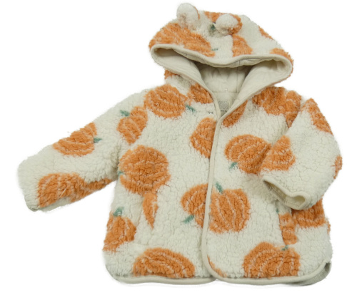 Bílá huňatá zateplená bunda s dýněmi a kapucí s oušky Tu