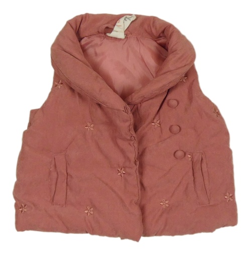 Starorůžová šusťáková zateplená vesta s výšivkami květin