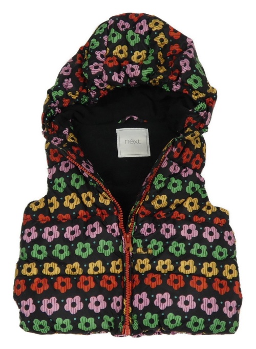 Černá šusťáková prošívaná zateplená vesta s kytičkami Next