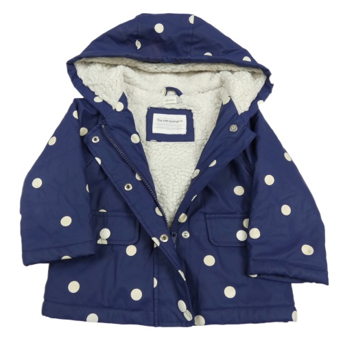 Tmavomodrá puntíkatá voděodolná zateplená bunda s kapucí John Lewis