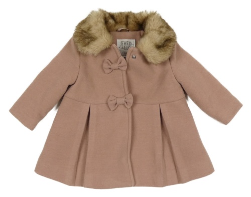 Starorůžový flaušový kabát s kožešinovým límcem F&F