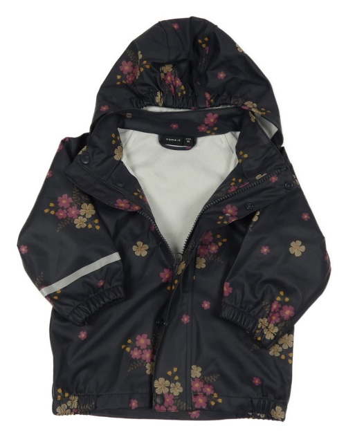 Tmavomodrá nepromokavá bunda s kytičkami a kapucí Lupilu