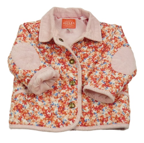 Červeno-bílá květovaná šusťáková lehce zateplená bunda Joules