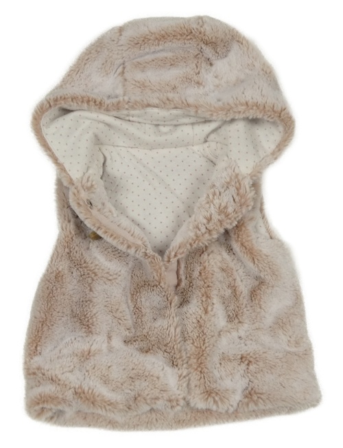Bílo-růžová kožešinová zateplená vesta s kapucí Nutmeg