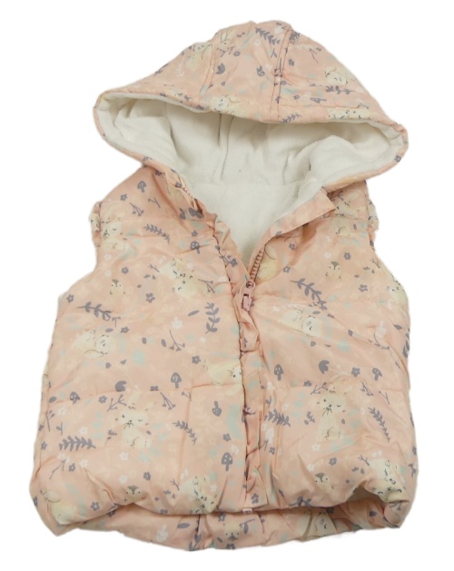 Světlerůžová šusťáková zateplená vesta se zajíčky a kapucí George