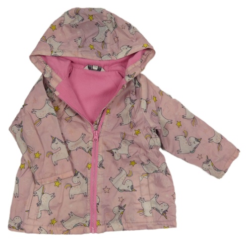 Růžová šusťáková lehce zateplená bunda s jednorožci a kapucí E-Vie