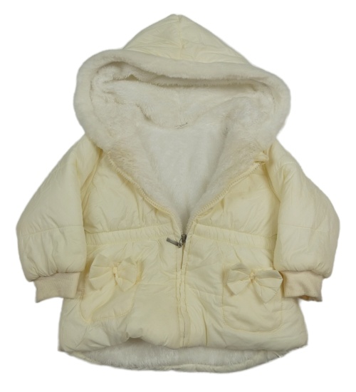 Smetanová šusťáková zimní bunda s mašličkami a kapucí Shein