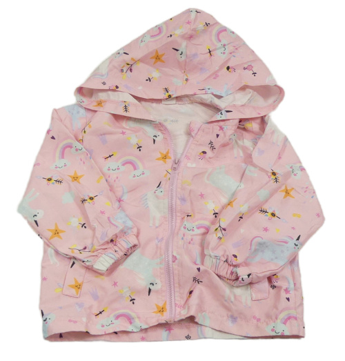 Světlerůžová šusťáková bunda s jednorožci a duhami a kapucí SHEIN