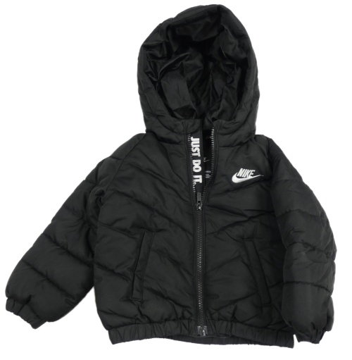 • Černá šusťáková prošívaná zimní bunda s logem a kapucí Nike