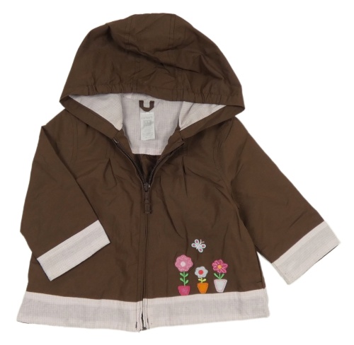 Hnědo-světlerůžový šusťákový podzimní kabát s kytičkami a kapucí Carter´s
