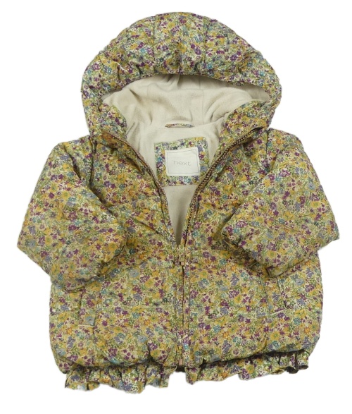 Smetanová kytičkovaná prošívaná šusťáková zimní bunda s volánkem a kapucí Next