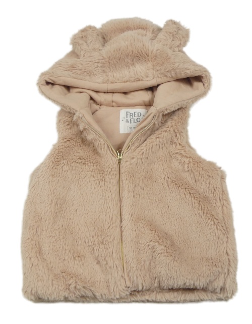 Pudrová kožešinová zateplená vesta s kapucí s oušky F&F