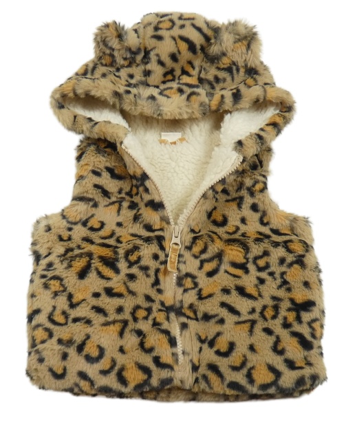 Béžovo-černá vzorovaná kožešinová zateplená vesta s kapucí Next