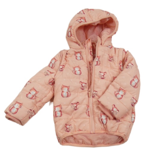 Růžová šusťáková zateplená bunda/vesta se zvířaty a kapucí Topomini