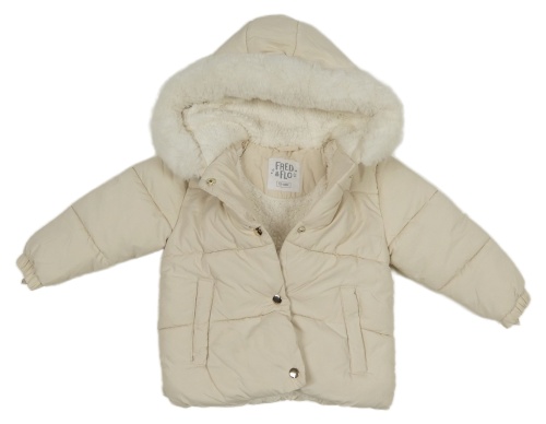 Smetanová šusťáková zimní bunda s kapucí s kožešinou F&F