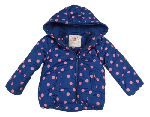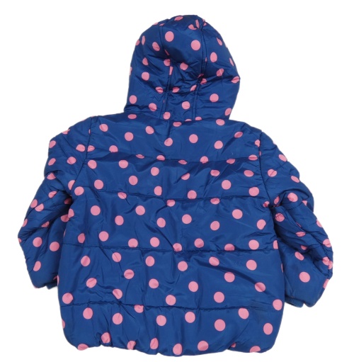 Tmavomodrá šusťáková zimní bunda s růžovými puntíky a kaucí George