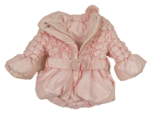 Růžová šusťáková prošívaná zimní bunda s páskem