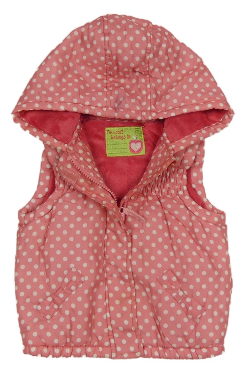 Růžová puntíkatá šusťáková zateplená vesta s kapucí Tu