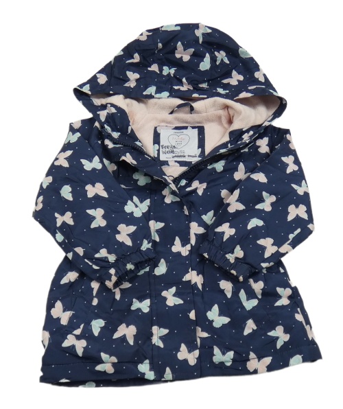 Tmavomodrá šusťáková podzimní parka s motýly a kapucí Primark